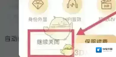 7、系统会弹出一个确认关闭自动续费的弹窗,提示您确认关闭。在弹窗内,点击继续关闭选项。