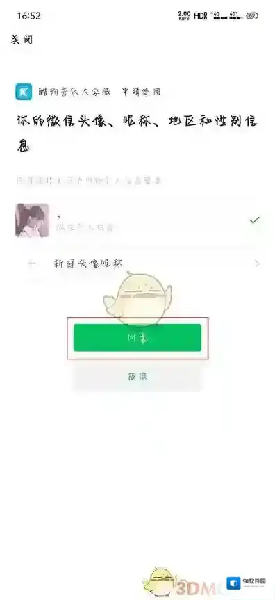5、然后跳转到微信之后,点击同意,同意酷狗音乐大字版的申请使用,同意之后就自动绑定该微信账号;