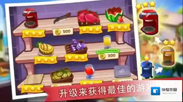 3、玩家还能利用闯关收集到的金币来不断升级自己的道具,让餐厅制作美食的效率更高,赚更多的金币!