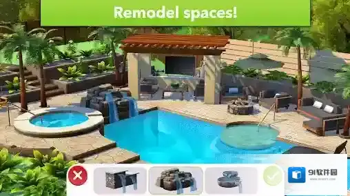 2、设计和翻新不同风格的房间,包括适合家庭的客厅、乡村风格的厨房、时尚的浴室和别致的卧室。