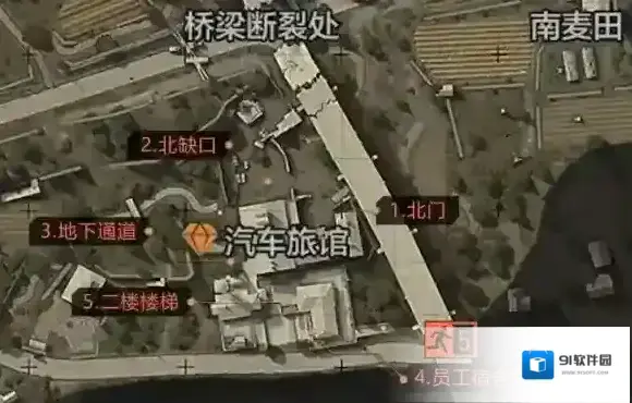 如上图所示,农场中部断裂的桥梁将农场分为东西两部分。玩家在战术行动中进入时的出生点和常驻撤离点分布在地图的东西两侧。