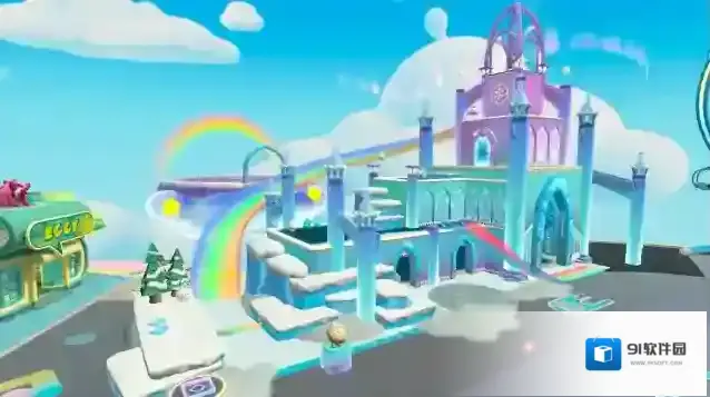 3、后面就是加速带和蹦床的困境了,这里是很多萌新的难点,主要是考验玩家的位置把握,如果位置找的准就会轻松过关,但是失败了也可以用飞扑来弥补。最后,大转盘看上去很难,实际上我们要撞上还是挺不容易的,只要上音响飞扑到达终点即可。