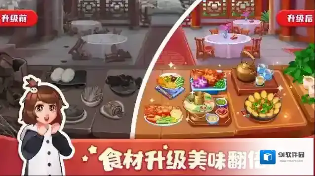 3、装修厨房,美食升级:模拟真实的厨房改造,升级食材来制作更令人垂涎欲滴的美食!