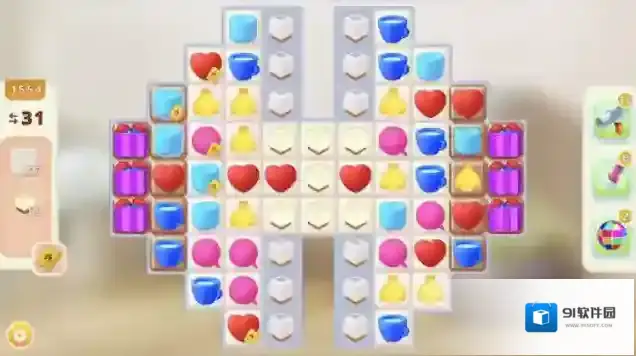 3、玩法非常简单,通过移动让三个相同图案连在一起即可消除。左侧也会显示关卡目标和剩余步数。