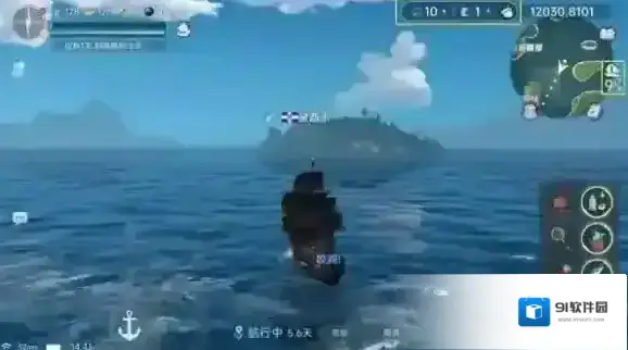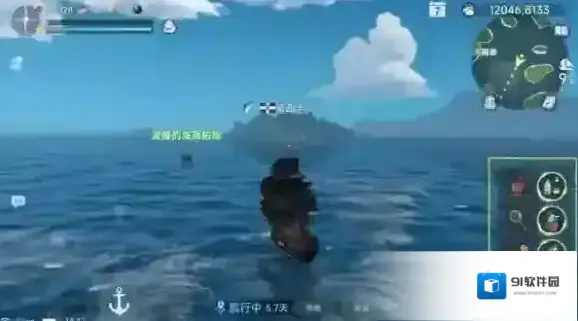 出海后点击左下角船舵中的船锚按钮即可启动船只,再次点击则可使船只停下,通过长按舵盘左右两侧,可以控制船只的行驶方向。