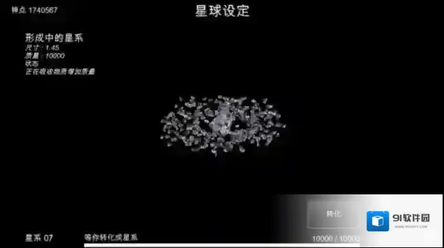 5、通过不断提升质量来收集神点,有了神点后就能够让你进行转化,并形成更多星球。