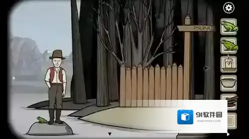 8.到天堂岛外,给左边的人绑上皮带,从嘴里吐出来的青蛙就会掉到地上,在下方石头上找到第四只青蛙。
