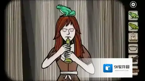 7.到树林2,将蛙笛交给妹妹。点击青蛙会看到青蛙鸣叫的符号,点击妹妹的左右手她会吹出符号,通过点击左右手产生和青蛙鸣叫一样的符号,5次以后可以得到第三只青蛙。