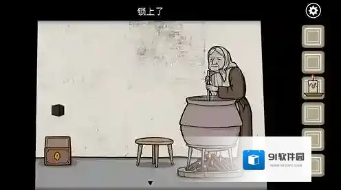 7、从房间退出,调查门口左下方的猫头鹰,把四条水蛭放入猫头鹰的嘴里,把翅膀往上拉,完成后拿到钥匙,用钥匙打开右边的木门,出现了一个黑色人影,点击两次进入锈湖中心。