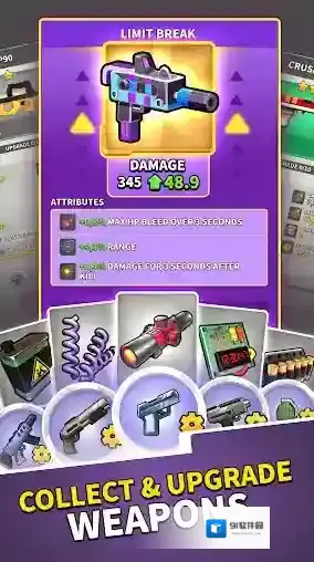 1、通过闯关我们还会获得宝箱奖励,开启宝箱就能获得随机的武器和材料,让你可以解锁升级更多武器,提高火力。